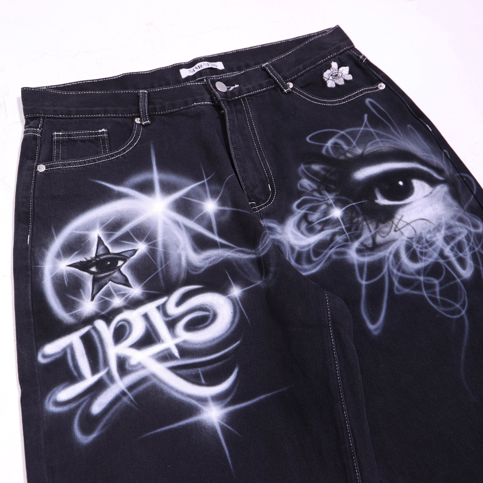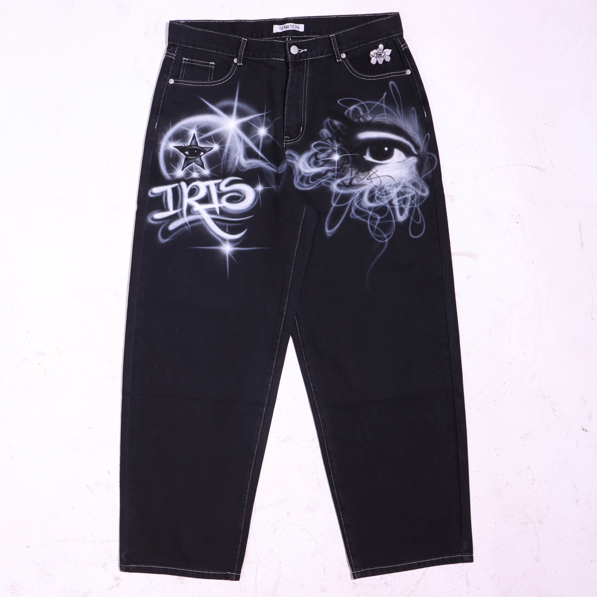 Custom 1 of 1 hand air brushed large black Iris Denim