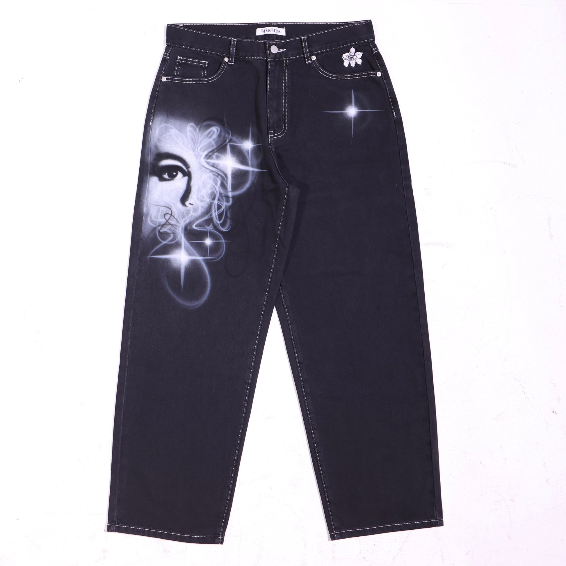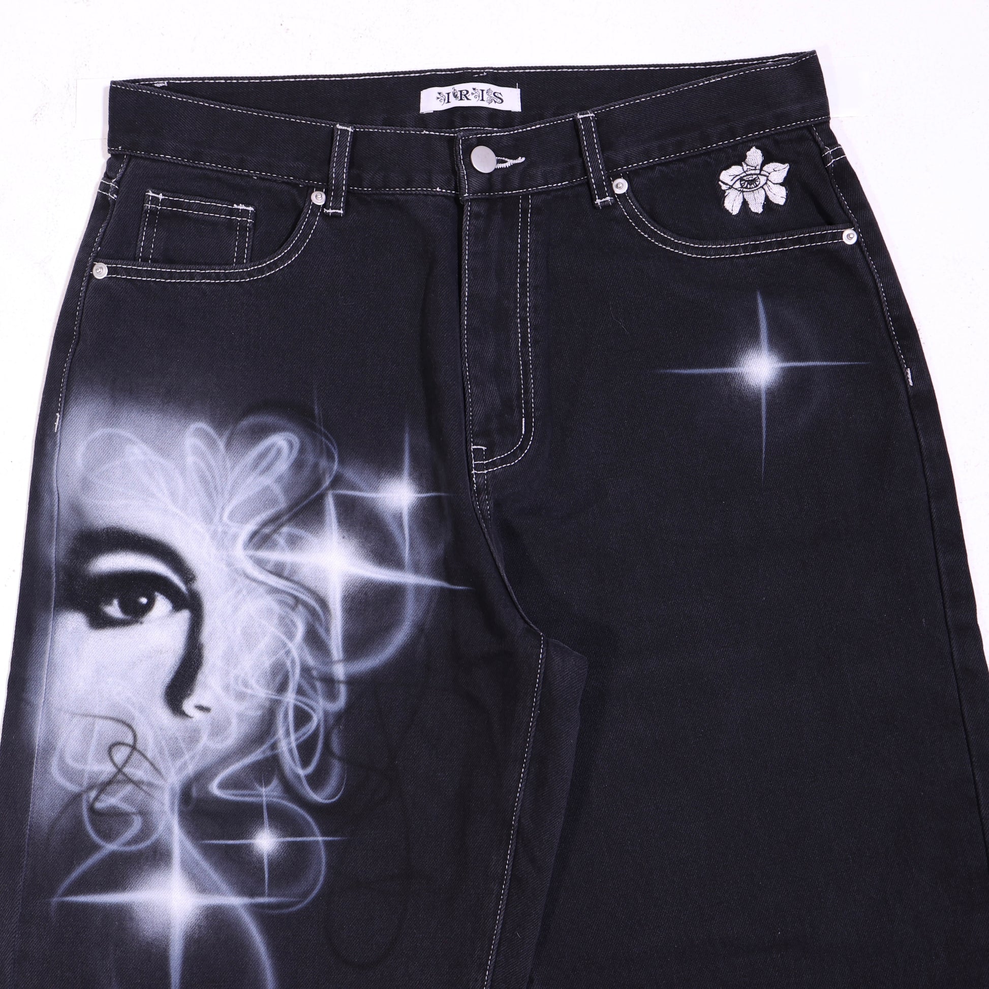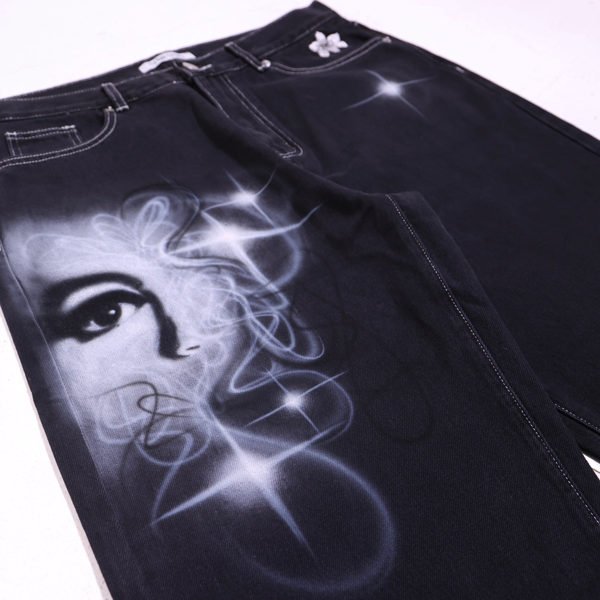 Custom 1 of 1 hand air brushed medium black Iris Denim